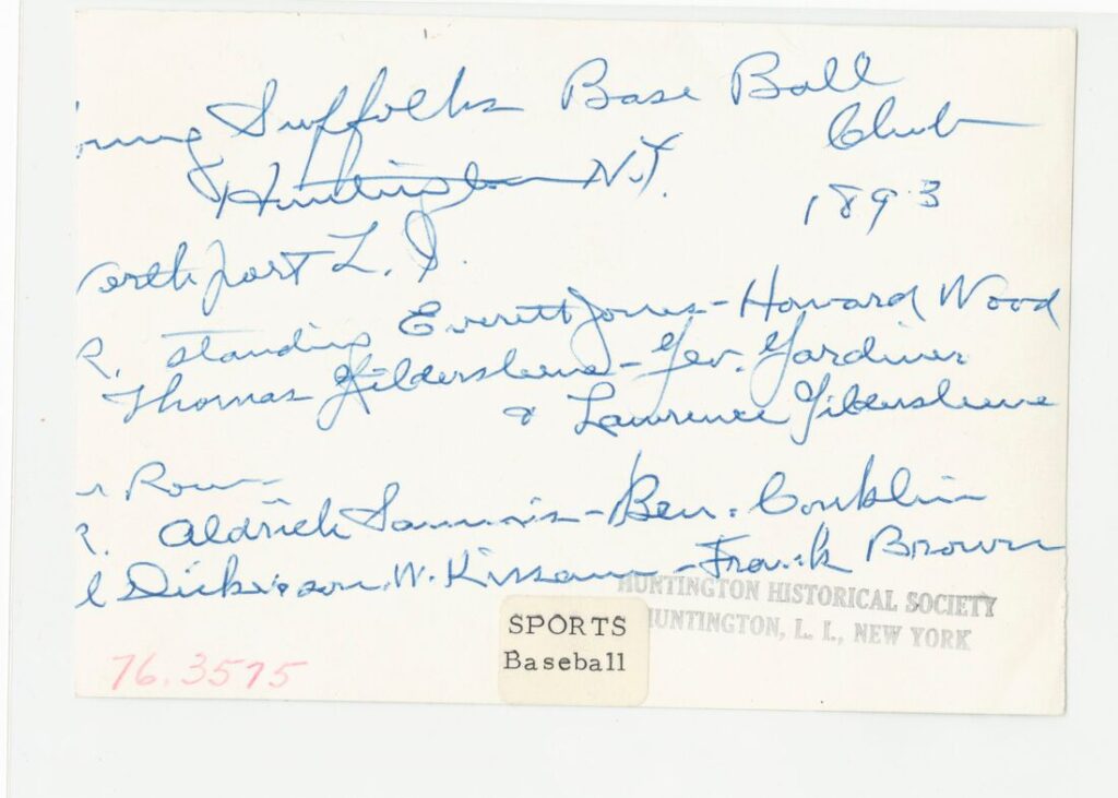 Later, other clubs were formed including the Young Suffolks, the Huntington Base Ball Club and teams from different parts of town like the Northport Base Ball Club and the West Side Boys.