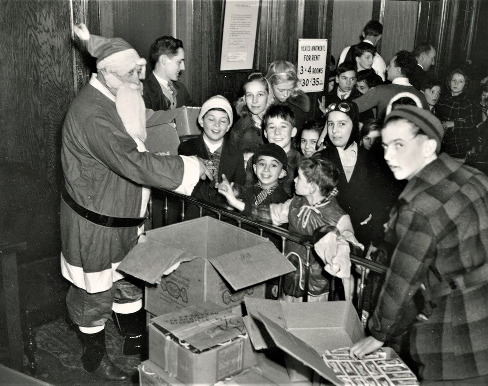 In Huntington during the 1930’s the Huntington Station Christmas Committee consisting of the Huntington Manor Fire Department, and the Senior and Junior Cadets, held a parade and Christmas party for the children of Huntington Station. With Santa Claus riding in the Fire Chief’s car the parade marched through the business section to the Huntington Station bank where the parade disbanded. Santa Claus handed out candy and gifts to all the children.