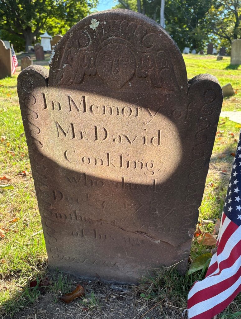 CONKLING (or CONKLIN, CONKLINE), DAVID (1743-1787). Associator, Huntington, New York. The Conkling family ancestors, of French Protestant extraction, arrived in the American colonies from England as early as 1634. The family, whose trade was glassmaking, initially settled in Salem, Massachusetts. David’s great-great grandfather was born in Salem, but by 1670 the Conklings were living in Huntington. David Conkling was born on August 24, 1743, in Suffolk County, at the family’s Dix Hills farm. David’s parents were Thomas Conkling (1700-1793) and Abiah Hubbard Conkling (1696-1793). He was christened at the First Church in Huntington on October 21, 1744. David had anywhere from six to ten siblings, depending on the source record; an elder brother, Thomas (born 1731), also an associator, is interred in the Old Burying Ground.