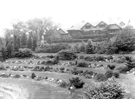However, Rosemary Farm had one unique architectural structure- an outdoor amphitheater seating over 3,000 people. No doubt inspired by his wife, a former opera singer and patron of the arts, Conklin, using a design by the Olmstead Brothers firm, built a replica of a Greek amphitheater. Set into the wooded hill on the south side of the house the amphitheater, with its terraced seating and central moat, would serve as a venue for musical and dramatic productions. Eventually such luminaries of the day such as John Barrymore and Sarah Bernhardt would perform there. The most famous event was the 1917 National Red Cross Pageant designed to sell war bonds and support America’s entry into WWI. With a cast of over 500 performers of stage and screen the event was filmed and had a theatrical release in December 1917. However, as of today the film has never been found.