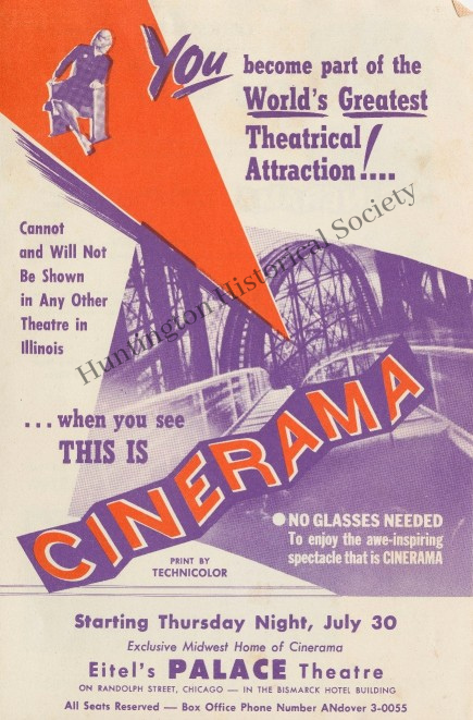 “If Cinerama has an actual birth-date it would be sometime in the middle of the 1930’s when as head of Paramount’s special effects department, I became aware that motion picture scenes that had been shot with an extremely wide angle lens seemed to convey a heightened sense of realism…. It was this that gave me my first hunch that the way to recreate reality on the screen was to extend the visual frame of reference to include “peripheral” sight, or what we normally see out of the corners of our eyes.”