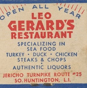 In March 1937, Leo purchased the 5-acre Bruns estate on the south side of Jericho Turnpike ½ mile east of Route 110. The estate home had a large dining room that could seat over 100 people in addition to several bedrooms. Leo Gerard added a dance floor, a taproom, and a cocktail lounge.