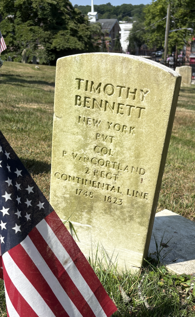 As per North America Family Histories, 1500-2000, which spells his surname as Bennet, Timothy served as a sergeant under Captain Jonathan Titus and Colonel Henry B. Livingston and was present at the surrender of British General John Burgoyne, who surrendered his army at Saratoga, New York, on October 17, 1777. The history of the unit details that the 2nd Regiment saw action in the invasion of Canada, the Battle of Valcour Island, Battle of Saratoga, Battle of Monmouth, the Sullivan Expedition and the Battle of Yorktown.
