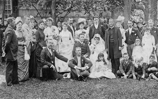 In two articles in the Long Islander (Huntington’s local newspaper started by Walt Whitman) describing weddings in 1879 and 1885, one bride wore dark blue silk, the other steel colored corded silk, the first married at precisely one o’clock, and took the afternoon train to the home of the groom in Brooklyn. The second, left the next day with her husband to their new home in Oyster Bay. Both weddings were held in their family homes.